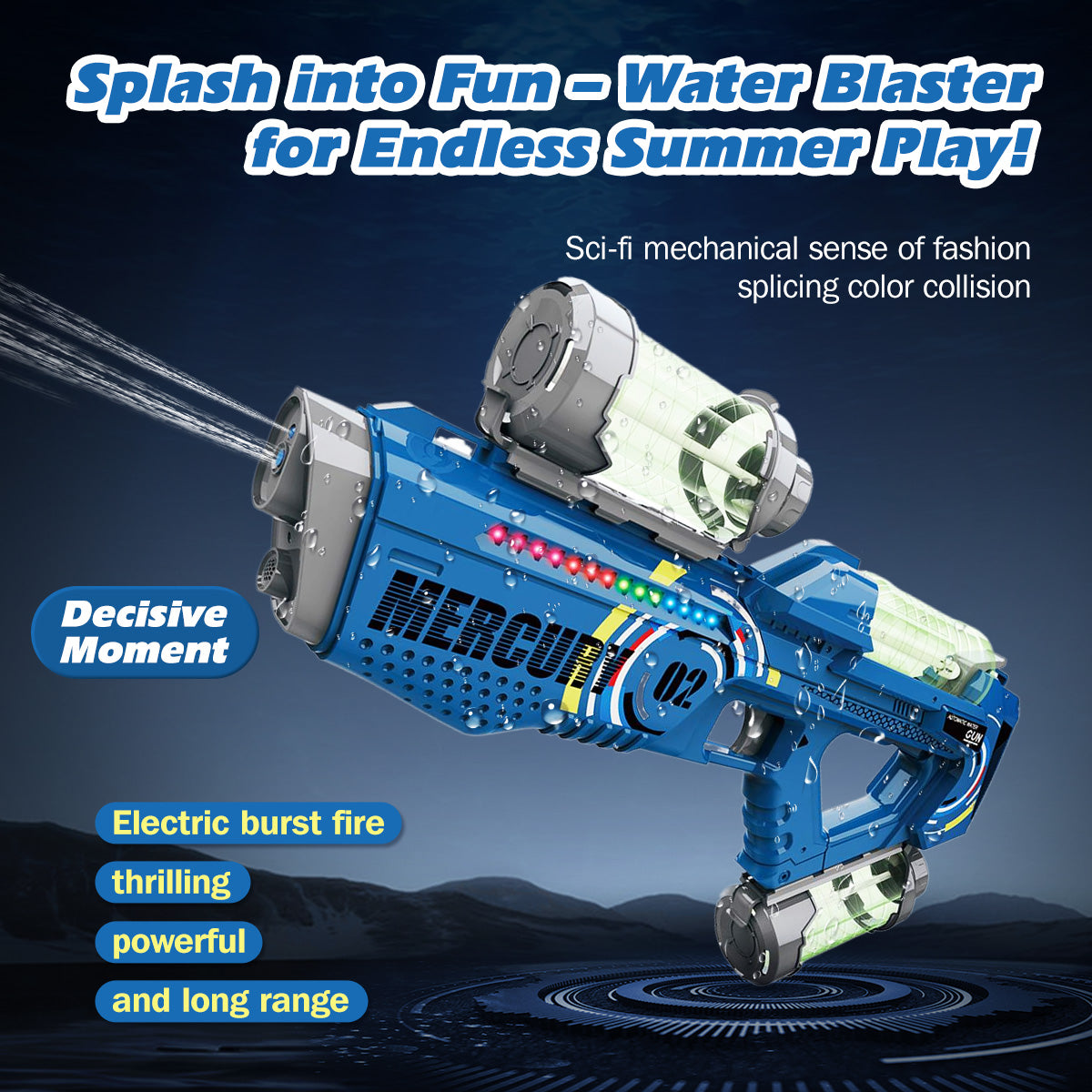 Summer Fully Automatic Electric Water Gun with Light Rechargeable Continuous Firing Party Game Kids Space Splashing Toy Boy Gift